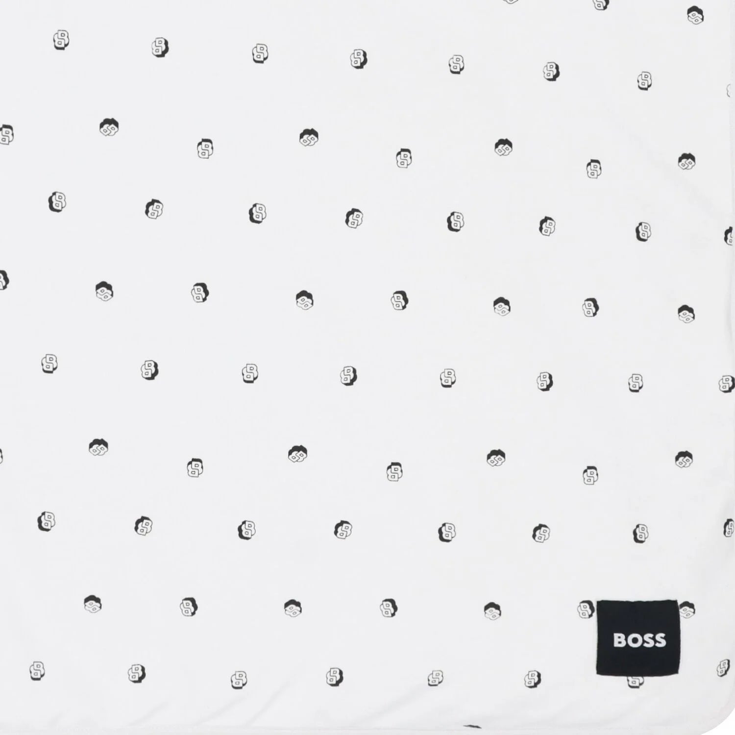 Ivory blanket for baby boys by BOSS. Made from soft padded cotton. It features the brands logo print in white on the front and monogram printed pattern on the reverse. Comes beautifully presented in a branded gift box. Matching items are available for purchase separately.
