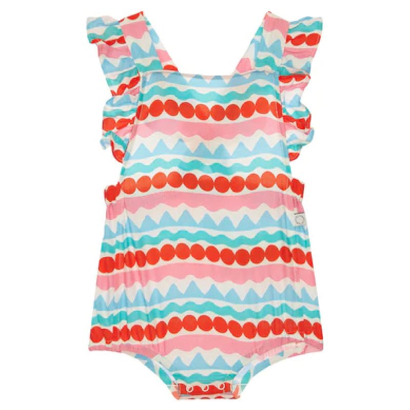 Graphic printed Jump swimsuit for girls by Stella McCartney. Made from soft polyamide, an elasticated waist for comfortable